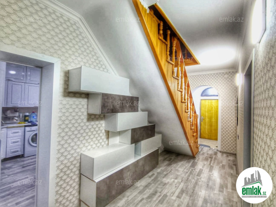 3 mərtəbə. Qaz, İşiq, su, kanalizasiya xətti, Kombi, internet var. Qoşa daşla tikilib. 1-ci mərtəbə qaraj, hovuz, 2 ədəd təmirsiz otaq. 2-ci mərtəbədə geniş zal, mətbəx, yataq otagı, sanuzel. 3-cü mərtəbədə 4 otaq sanuze...
