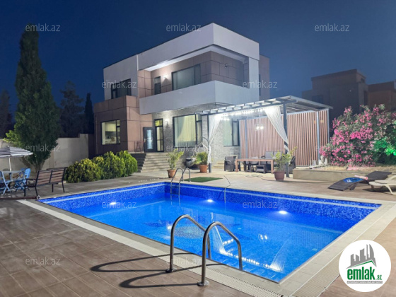 Сдаётся 3-х этажный дом (вилла) с бассейном, расположенный В Сабунчинском районе в поселке Пиршагы, 5 комнат, 400kв, 25 (сот). Хороший ремонт, полная обстановка: спальная и мягкая мебель, встроенная кухонная мебель, стир...