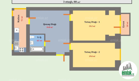 Yasamal rayonu, A.M.Şərifzadə küçəsi, ATV kanalın yanı, Leninqrad Layihəli 9 mərtəbəli binanın 7-ci mərtəbəsində, Qanuni 2 otaqdan 3 otaqa ideal şəkildə düzəldilmiş ( Hər Otaqa və Mətbəxə pəncərə düşür), Ümumi Sahəsi 86 ...