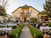 Həyətdə yay besedkası və hovuz yerləşir.