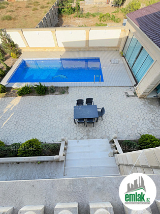 Həyətdəki hovuzun uzunluğu 9 metr,eni 4 metr,dərinliyi 1,7 metirdir.