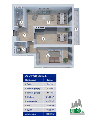 - Otaqların sayı3
