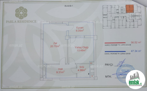Suraxanı rayonu Yeni Günəşli V massivdə Fatmeyi məscidə yaxın *Parla Residenc* kompleksində 14 mərtəbəli binanın 12 ci mərtəbəsində ümumi sahəsi 56.52 kv.m olan 2 otaqlı təmirsiz mənzil satılır.Binada tikinti işləri tezliklə yekunlaşacaq.Mənzil sahibinə təcili pul lazım olduğu üçün qiyməti aşağı satır.Ərazi olaraq bina çox əlverişli məkandadır.Ətrafında bağça məktəb market və digər iaşə obyektləri yerləşir.Xalqlar Dostluqu və Əhmədli metrosuna marşurutlar gedir.Mənzilin sənədi müqavilə.Binada tikinti yekunlaşanda kupçada veriləcək.!!!