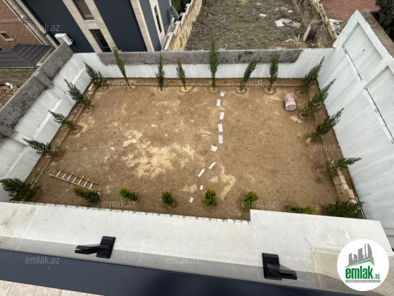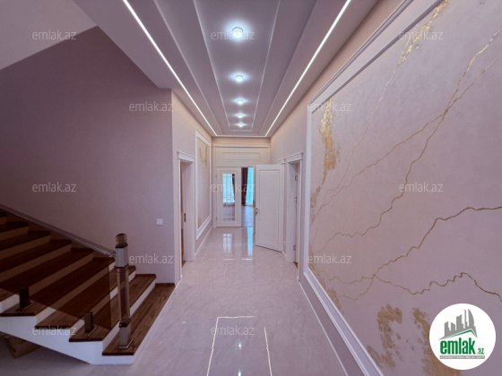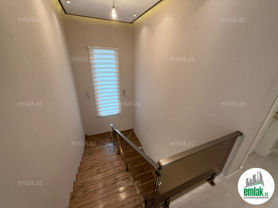 1ci mərtəbədə 50 kv.m zal, böyük və kiçik yataq otağı, içində sanuzel, mətbəx və sanuzel, 2ci mərtəbədə 4 yataq otağı, sanuzel, 60 kv.m terras və terrasa çıxışda mini mətbəx, aşağıda bağlıq sahəyə açılan 45 kv.m böyük yay mətbəxi, yarım zirzəmidə 2 otaq var, sauna, idman zalı kimi istifadə edilə bilər. Həyətdə əlavə bir sanuzel, əlavə olaraq 13 tonluq su çəni quraşdırılıb.