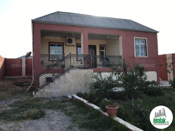 yoldan 100 metr arali,6 sot torpaqda tikilmiş,6 daş kürsülü,120 kv.m.4 otaqlı,əla təmirli ev.Ev əşyalarla bir yerdə satılir(soyuducu,paltaryuyan maşın,...