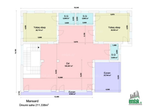 • 9 otaq, 3 mərtəbə