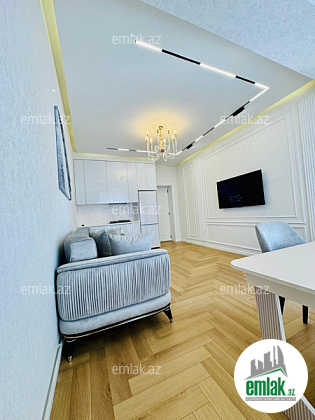 2 otaqlı studiya tipli mənzil zövqlə və yüksək səviyyədə təmir olunub.