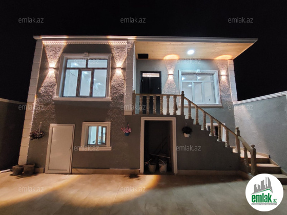Abşeron rayonu Məhəmmədli yaşayiş massivi bütün infrostrukturlu ərazidə dayanacağa 50metr piyada məsafədə 2.5 sot torpaq sahəsinin icində sahəsi 216kvm cox keyfiyyətli materiallarla tikilmiş ikinci mərtəbəsində böyük te...