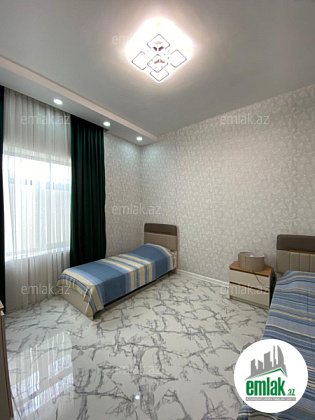Xəzər rayonu Merdekan qesebesi 3.5 sot torpaq sahəsində inşa edilmis 1 mərtəbəli bag evi satilir. Ümumi 150 kvmdir. 1 zal, 3 yataq otağı, 1 metbexi, 2 sanuzeli movcuddur.Heyetinde hovuz, manqalni, sohbetgah,terras, dekor...