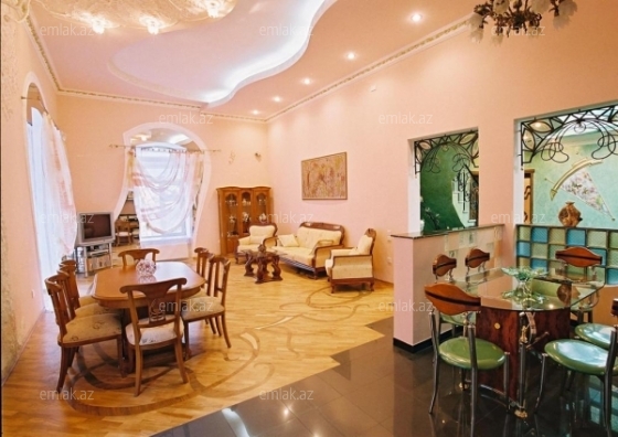 Cдается 7-ми комнатная квартира в центре города,на Торговой .Этаж 2/2.Дуплекс. Общая площадь 300 кв.м. 2 с/у в отличном состоянии,джакузи, душевая кабина. Отличный ремонт. Раздельные комнаты. Пол (паркет). КТВ,стиральная машинa,отопительная система "Комби" , телевизор, 5 сплит-кондиционера. Качественная кухня со всей бытовой техникой в наличии. Имеется мансарда.Оплата 3200 АЗН. (Абдул)