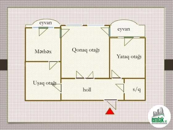 2 otaqdan 3 otağa düzəlmə (studiya plan)