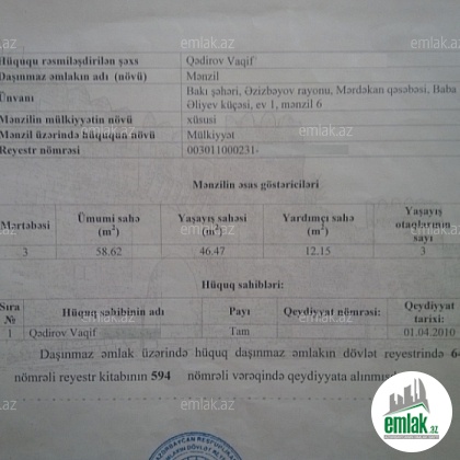 Mərtəbə: 4/6   Sənədin tipi: Çıxarış (Kupça)