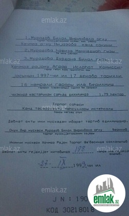 Məmmədoğlu servisin arxası,2005ci il Bələdiyyə sənədi,hər iki tərəfdən məhləhə çıxış var.Qaz,su,işıq,kanalizasiya xəttləri var.Avtobus dayanacağına 5dəqiqəlik məsafə.