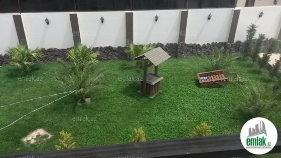 Şexsi tikilmis heyet evidir . Alt ust monalit betondur...7 otagdan ibaretdir . Orta temirli 6 sotun icinde.Otaglar genisdir. Evin icinde heyetin de hamam sanuzel var. Heyetde 10 t su baseyini var. Qaz su isig internet ...