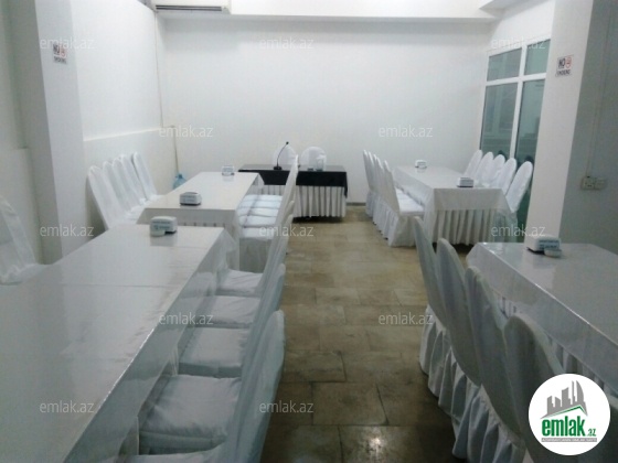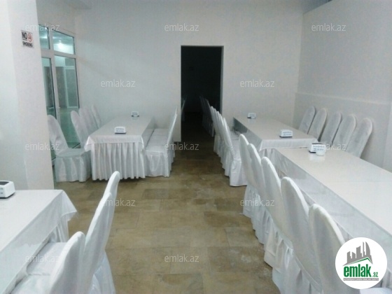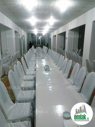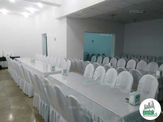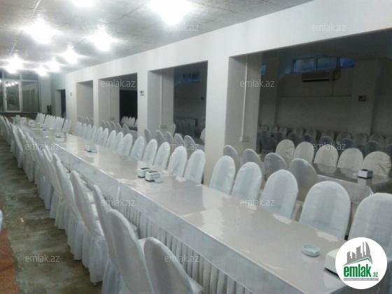 İnşaatçılar metrosu və Bizim marketin yanında, yeni tikilinin 1-ci mərtəbəsində, işlək vəziyyətdə olan obyekt satılır. Obyekt hal-hazirda Mərasim evi kimi fəaliyyət göstərir. Ümumi sahəsi 900 kv.m-dir. 650 nəfərlik ümumi, 100, 150, 250 nəfərlik zalları fəaliyyət göstərir. Bütün sənədləri tam qaydasındadır. Satışa bütün əşyalar daxildir.
