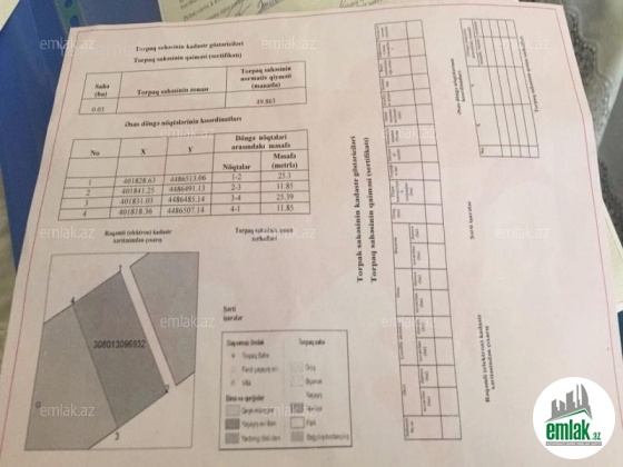 Fatmayı qəsəbində poliklinikanın yanında 3 sot sənədli(kupça)torpq sahəsi satılır.Torpaq sahəsi çox əlverişli yerdə yerləşir dənizə panoraması var yola yaxındır,avtobus marşrutları yaxınlıqdan keçir; yaxınlıqda məktəb və bağça,poliklinika var.Torpaqı münbit,əkin üçün yararlıdır,kommunikasiya xətləri(işiq,su,qaz)var.Ətrafda yaşayış coxdur.Ölçüləri yol tərəfdən 11,85 metr 25,39 metrdir. Torpaq sahəsi özümə məxsusdur və özüm satıram.Ciddi olmayan şəxslərin narahat etməməsini xahiş edirəm.Son qiyməti 10.000 azn.