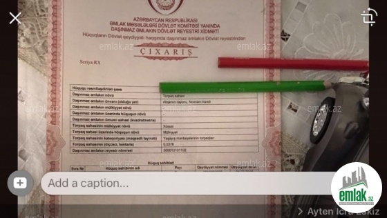 Məmmədoğlu servisin arxası,2005ci il Bələdiyyə sənədi,hər iki tərəfdən məhləhə çıxış var.Qaz,su,işıq,kanalizasiya xəttləri var.Avtobus dayanacağına 5dəqiqəlik məsafə.