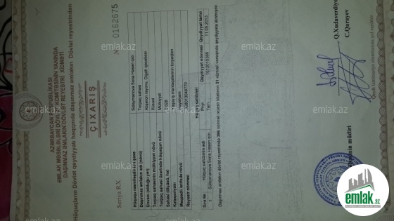 Mehdiabad Diga yolunun uzerinde.svetofordan 500 metr sonra, Nicat marketden 2 kuce sonra.demek olar ki 3 sotdur.hasari var her terefinde yawayiw var...senedi cixariwdi...real aliciya endirim ederem...bazar qiymetinden ucuz satiram...