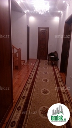 Torpaq sahəsi 5 sot. Ev ərazisi 12*13. 3 mərtəbədən ibarətdir. Alt mərtəbədə 3 maşınlıq böyük qaraj, 1-ci mərtəbədə böyük zal (54 kv .m), bir oturma otağı, kuxna və sanuzel, 2-ci mərtəbədə 4 yataq otağı, sanuzel və balkon. Hemçinin çardaq var. Heyetde meyvə ağacları, 1o tonluq yeraltı su çəni, kababxana yeri var. Su, işıq, qaz daimidir. Kupça var. Kirayə də vermək olar.