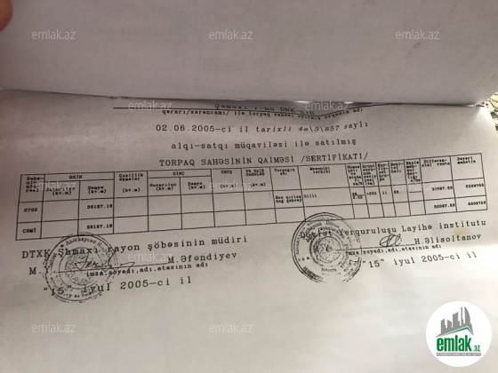 Məmmədoğlu servisin arxası,2005ci il Bələdiyyə sənədi,hər iki tərəfdən məhləhə çıxış var.Qaz,su,işıq,kanalizasiya xəttləri var.Avtobus dayanacağına 5dəqiqəlik məsafə.