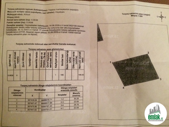 Torpaq Zabrat-Kürdəxanı yolunun üstündə, \"EFAR\" restoranının qarşısında, avtobus dayanacağının yaxınlığında, yoldan rahat girişi olan, Məmmədli bələdiyyəsinin sürətlə inkişaf edən ə...