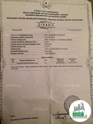 Savalanda 3 sot (10×30) şəxsi mülkiyyət çıxarışlı, yəni qanuni tikintiyə tam yararlı torpaq satılır. Sağı solu qarşısı sıx yaşayış sahəsidir. Qaçağan kafenin 200 metrliyində yerləşir. Məmmədli sürət qatarı stansiyasına d...