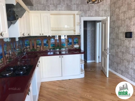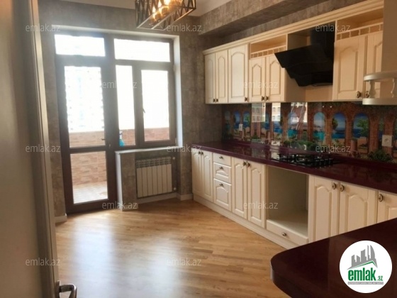 Недалеко от ст. Метро Эльмляр Ак. Факор MTK. Сзади Фаворит маркета. Продается 3-х комнатная квартира площадью 127кв/м этаж 14/15. Большой охраняемый двор. Есть газ. Отличный ремонт . Очень дорогой ремонт, после ремонта никто не жил, в отделочных работах были использованы дорогие и самые качественные материалы. Дубовый паркет высшего сорта. Большой холл, в холле есть встроенной шкаф купе. 2 сан узла, теплые полы, комби. Встроенная кухонная мебель. Спальняя мебель. Просторный балкон.