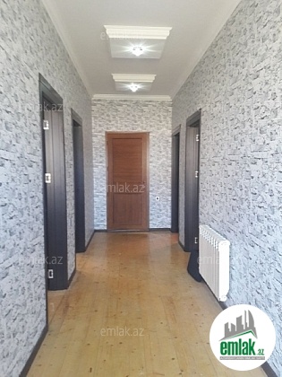 yoldan 100 metr arali,6 sot torpaqda tikilmiş,6 daş kürsülü,120 kv.m.4 otaqlı,əla təmirli ev.Ev əşyalarla bir yerdə satılir(soyuducu,paltaryuyan maşın,...