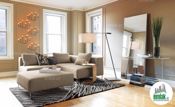 Mənzil binanın 5-ci və 6-cı mərtəbələrini əhatə edir, ümumi sahəsi 200 kv.m, 5 otaqlıdır.