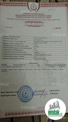 Mərtəbə: 1   Sənədin tipi: Çıxarış (Kupça)