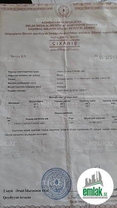 Mərtəbə: 8/9   Sənədin tipi: Çıxarış (Kupça)