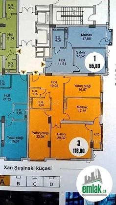Ümumi sahəsi 116 kv.m olan.