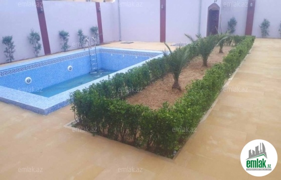 Tecili!!! Merdekanda 6sota bag evi satilir Ümumi sahəsi 160kv.m, 4 otaqdan ibaret,3 yatagi 1-zali 2-sanuzeli, hündür tavanlı, zövgle temir edilib, istilik kombi sistemi, keyfiyyetli tikinti materiallarında istifadə olunub, yay metbexi,filtirli hovuzu,yolu asfalt, ev tam infrastrukturlu yerde yerlesir, ve il boyunca yasamaq ucun yararlidir. icmeli suyu,qazi,daymi. Sənədlər qaydasındadır, kupçası var.