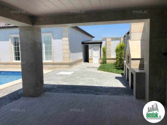 Merdekan qes. Merdekan - Buzovna yolun yaninda yerleşen 1 mertebeli yaşanmamış bag evi satılır, site tipli kompleksde yerləşir, 6 sot, 200 kv.m, 1 zal, 3 yataq otagi, 2 san/qovş evde ve 1 san/qovş heyetde, metbex mebeli, ev tam isti döşemelidi, kombi istilik sistemi, hündür tavanlı, heyetinde besedka, manqal, filtirli daşma hovuz, qaz, işıq, cıxarış. Bag yaşayiş massivinde yerleşir ve il boyunca yaşamaq ucun yararlidir. Yolu asvalt.