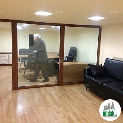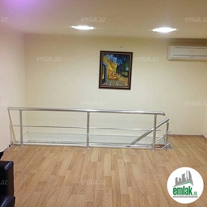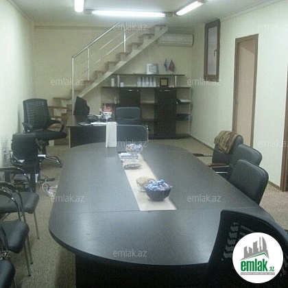 Bayil qesebesi, Bayraq meydanin qarwisi,Panoramic Restoranin yaninda yol qiraginda 2 mertebeli 215 kv temirli qeyri yawayiw sahesi..1ci mertebede geniw zal 2 kabinet,1 metbext,sanuzel,2ci mertebede geniw xol 1 kicik arxiv otaqi.Telefon wifi var.iwiq su daimidir.Kupcalidir.