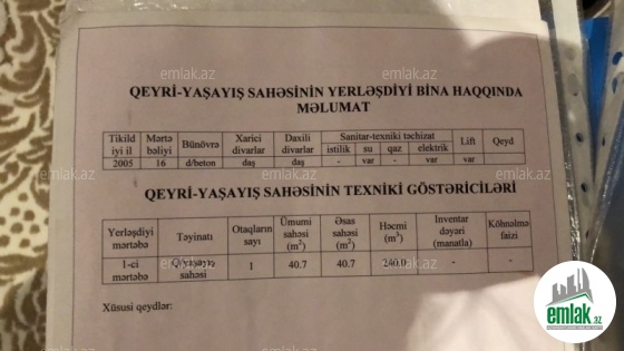 - Sahəsi: 40 m2