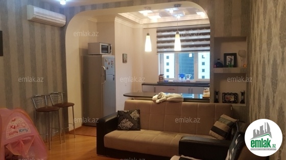 Продаю 2х комнатную квартиру удачно переделанную в 3х комнатную расположенной в Наримановском районе, по проспекту Хатаи, рядом с Министерством Образования, в здании «Messenat Holding». Зал студия. Ремонт делали сами под маяк. Были использованны самые качественные материалы, трубопроводы, изолация стен, паркет, обои. Только на мрамор кухни было потрачено 3000 манат. Квартира продаётся со всей мебелью и техникой. Система комби, аристон. Балкон с видом на море и проспект. Газ есть.Охраняемый двор, место для парковки, подземный гараж, детская площадка. Документ-договор.Круглосуточная охрана.
