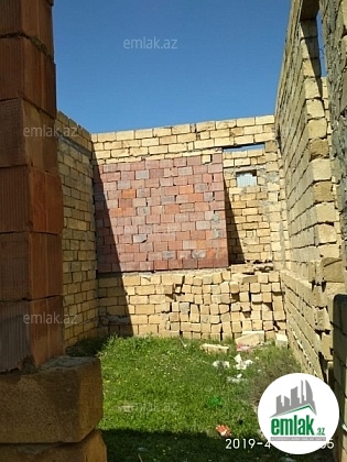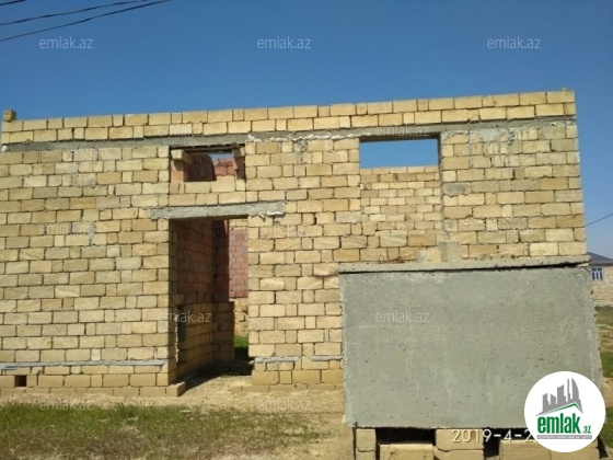 60smdan çox yeri qazılmış tökülmüş beton üstündə 7daş üstündə tikilmiş 1 mərtəbə həyət evi. Evin daş işi təmiz bitmişdir. Tək Pəncərələrin üzəri deyil kruqavoy evin üste beton ilə bağlanmışdır. Real alıcılarla qiymətdə razılaşmaq olar. Həyət evi 3 otaq bir zaldan ibarətdir. Hamam və tualet ev daxilində var. Həyətdə 5 tonluq su çəni də mövcuddur.