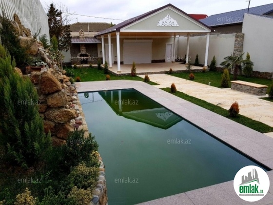 Merdekan qesebesinin en prestijli yerlerinden birinde 7sot torpaq sahesi erazisinde muasir zovq ve dizaynla inwa edilen bag evi satilir.Bag sahesinde filtrli baseyn,besedka,qaraj,dekorativ agaclar vardir.Bag evi 3iwigli yataq otagi,1geniw qonaq otagi,geniw metbex,3hamam ve sanitar qovwagi vardir.Bag evinin qazi,suyu,iwigi daimidir,butun senedleri qaydasindadir.