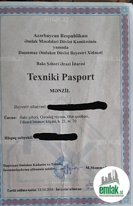Köhnə tikili, eksperimental layihəli binada yerləşən, 3 otaqdan 4 otağa düzəldilmiş mənzil satışa çıxarılıb. Mənzil 9 mərtəbəli binanın 3-cü mərtəbəsində yerləşir.