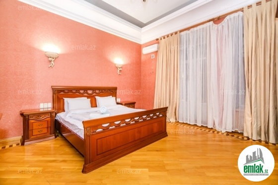 Köhnə binada, şəhərin mərkəzində, Nəsimi rayonunda, 28 May metrosun yani, «Music Gallery» üzbəüz hər bir şəraiti olan 9 otaqlı dubleks mənzil kirayə verilir. 3/3 mərtəbəsində 4 eyvanı olan və hər eyvanı şəhər mənzərəli evdir.2 qonaq otağı 6 yataq otağı. Ümumi sahəsi 500kv.m. Əla təmirli deluks ev. 5 split kondisioner, plazma TV, soyuducu,2 hamam-tualet 1-ir hamamında cakuzi. Paltar və qabyuyan maşın, istilik sistemi - “kombi”,qaz, su, işıq daimi, 24 saat mühafizə, sakit həyət. Mətbəx- tam təchizatlı. (Ev 28-mall və Tarqoviyə 5 dəqiqəlik məsafədə) Evin qiyməti gün sayından aslı olaraq və bayram günlərində dəyişir. Mənzil ən azı 3 günlük kirayə verilir.