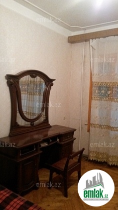 8-ci mikrorayon, Azadlıq prospektində "Qızılgül" supermarketinin arxasındakı həyətdə "leninqrad lahiyə"li 9 mərtəbəli binanın 1-ci mərtəbəsində, sahəsi 86 kv.m+14 kv.m (artırması) olan təmirli, 3 otaqlı mənzil ailəyə kirayə verilir. Mənzilin geniş qonaq otağı və mətbəxi var, döşəmə parketdir. Mənzil mərkəzi istilik sistemlidir, orta blokdadır, yelçəkəndir. Eyvanın qarşısı fəvvarəli istirahət parkı, uşaq istirahət mərkəzi, idman meydançası olan yaşıl həyətə, arxa eyvan isə trenojorlarla təchiz olunmuş idman sağlamlıq parkına, prospektə və poliklinikaya baxir. Domofon, wi-fi, split kondisioner, paltaryuyanı, hər bir şəraiti var. Mənzil bütün infrastruktorlara yaxındır.
