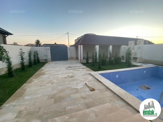 Merdekan qesebesinde Bravonun yaxinliginda yola yaxin 5.5 sotun icinde inşa edilmiş umumi sahesi 170 kv-m olan 4 otaqli bağ evi satilir ! Evin tikintisində keyfiyyətli tikinti materiallarından istifadə edilmiş və çox səliqəli inşa edilmişdir. Heyetinde geniş filtirli hovuzu, bisetkasi , dekorativ ve meyve aqaclari , sensorla olan gece isiqlari, sanitar qovsaqi var.Qazi , suyu , isiqi daimdir . Istilik sistemi kombidir . Senedleri qaydasindadir (KUPCA)