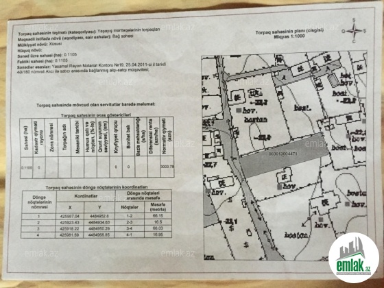 1) Torpaq sahəsinin kateqoriyası(məqsədli təyinatı) - Yaşayış məntəqələrinin torpaqları.