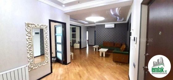 Mənzil binanın 5-ci və 6-cı mərtəbələrini əhatə edir, ümumi sahəsi 200 kv.m, 5 otaqlıdır.