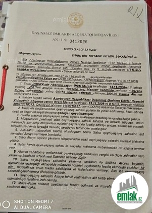 Torpaq sahəsi 3.6 sotdur, 4 küncdür və tikinti üçün ideal ölçüdədir.