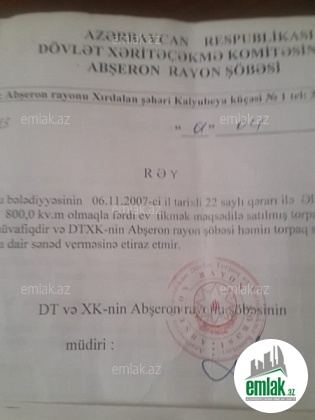 Merdekanda çox prestijli bir yerde ,Merdekan deniz yolu \"Khalcha \" restoraninin arxasi , \" Serhed Qoşunları \" akademiyasini keçen kimi yolun saginda , \" Tagiyev \" küçesinde , yoldan 400-500 metr iceri...