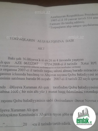 Ünvan: Abşeron Rayonu Qobu Qesebesi Lökbatan Arka ya çox yaxın Qobu yaşayış kompleksine 2-3 deygelik mesafede
