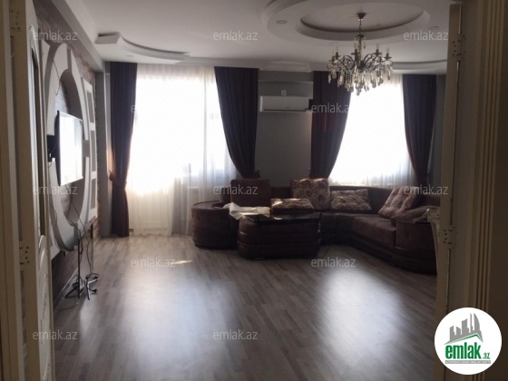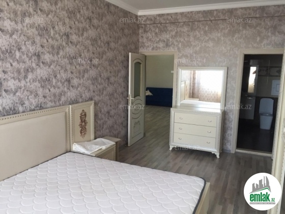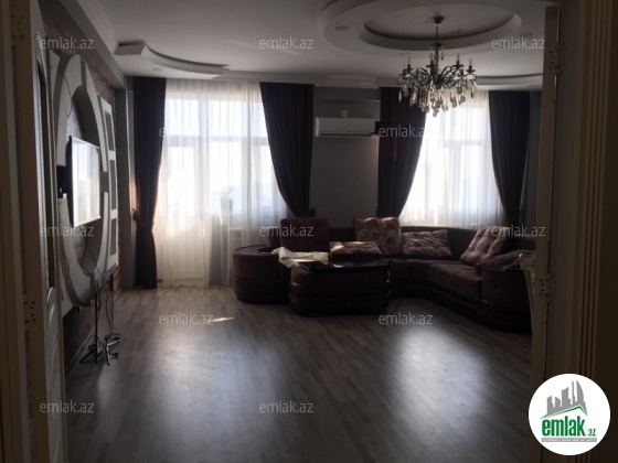 Этаж 18/18. Общая площадь 160 кв.м. 2 санузла в отличном состоянии. Отличный ремонт. Раздельные комнаты. Пол (паркет). КАТВ, стиральная машина, отопительная система «комби» , плазменный телевизор, 3 сплит-кондиционера. Качественная кухня со всей бытовой техникой в наличии. Коммуникации 24/24. Охраняемый двор, кодовый блок, 2 скоростных лифта "Сигма", место для парковки, подземный гараж, детская площадка. Оплата 900 АЗН. (Джавид)