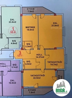 Ümumi sahəsi 128 kv.m olan,